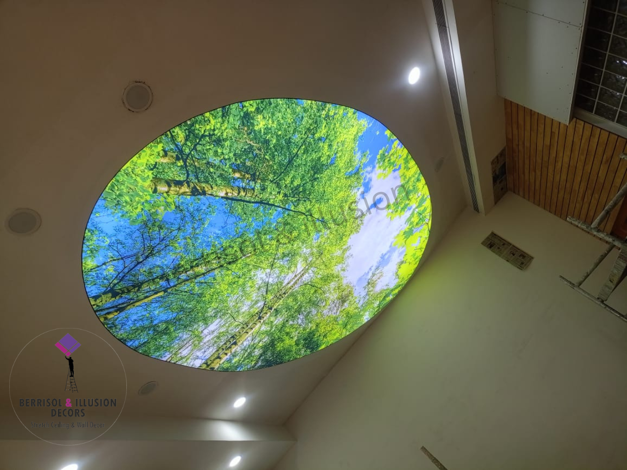 PVC-based stretch ceilings are waterproof. If water leaks from the floor above, the ceiling membrane can hold significant amounts of water until it is safely drained, protecting your interiors.